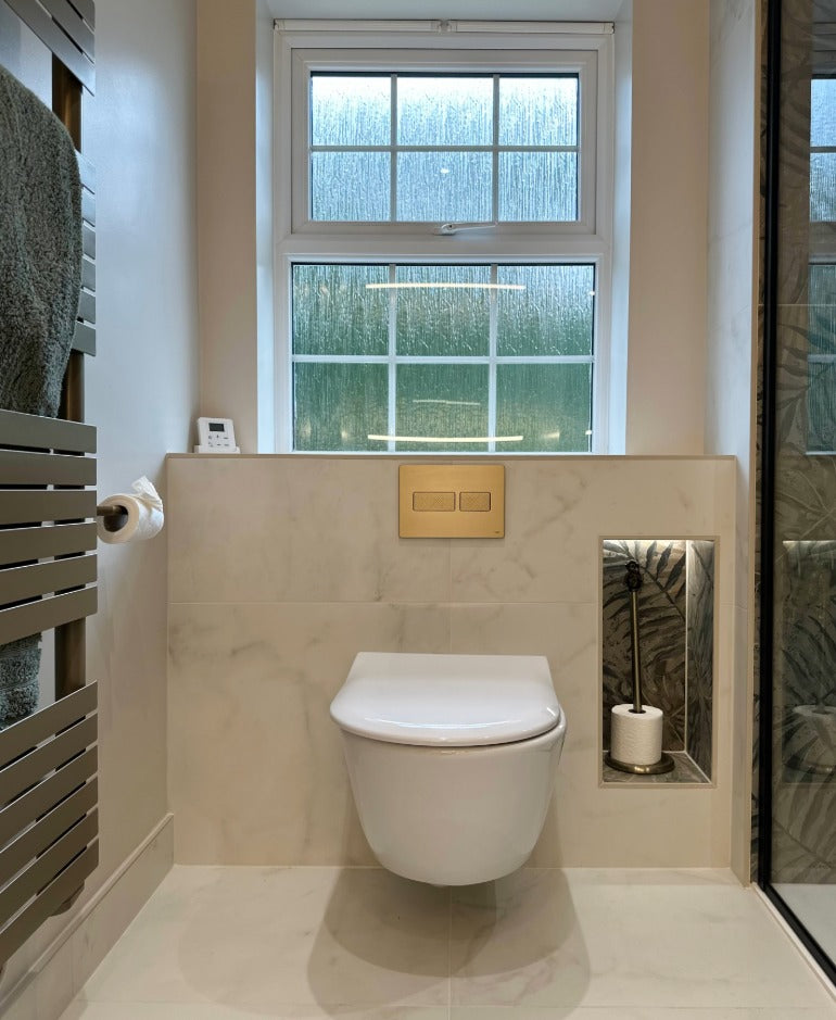 The brief for this project was to elevate a standard modern build bathroom into a calm, spa inspired retreat with natural texture and refined finishes.