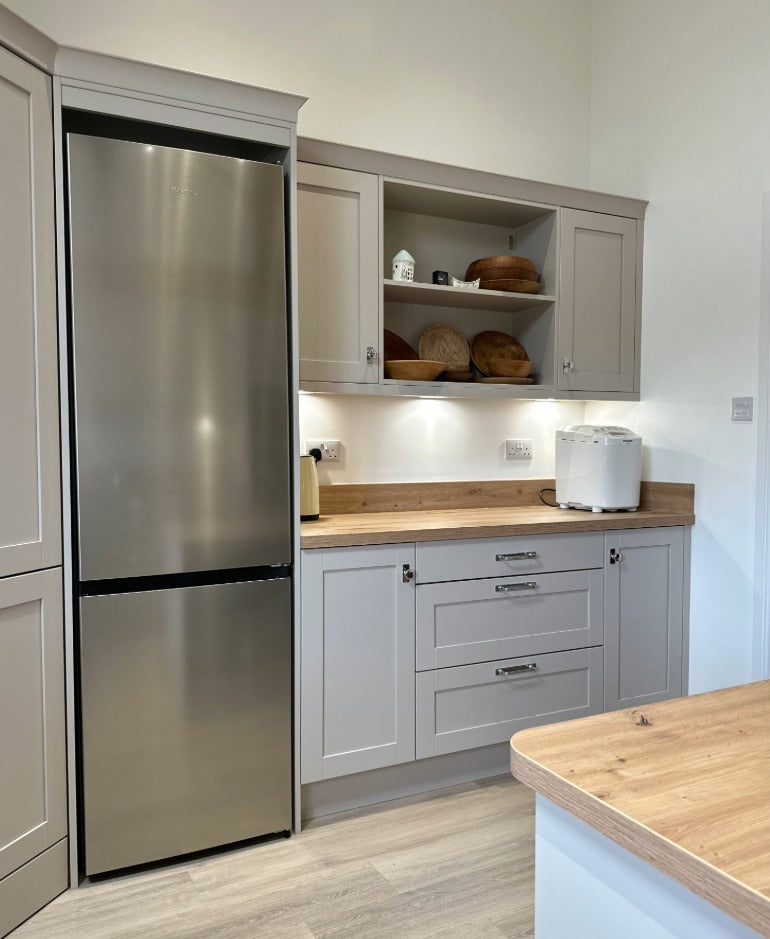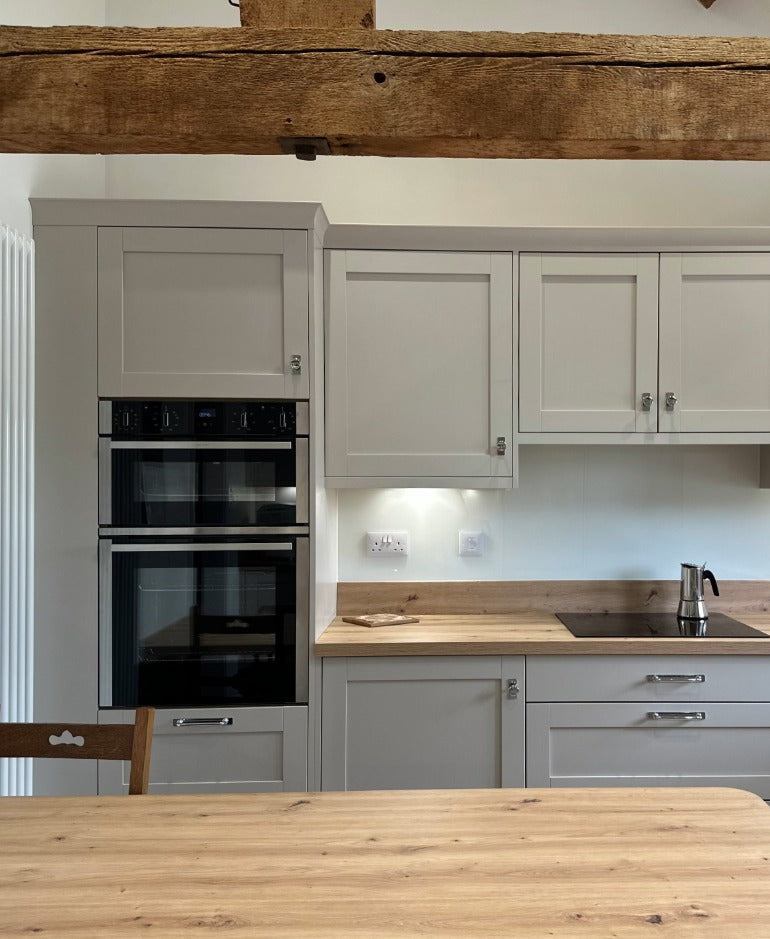 The finished kitchen balances simplicity with warmth,  a classic shaker design, tailored perfectly to the client’s lifestyle and love of home baking.