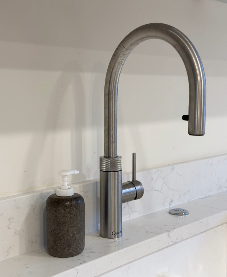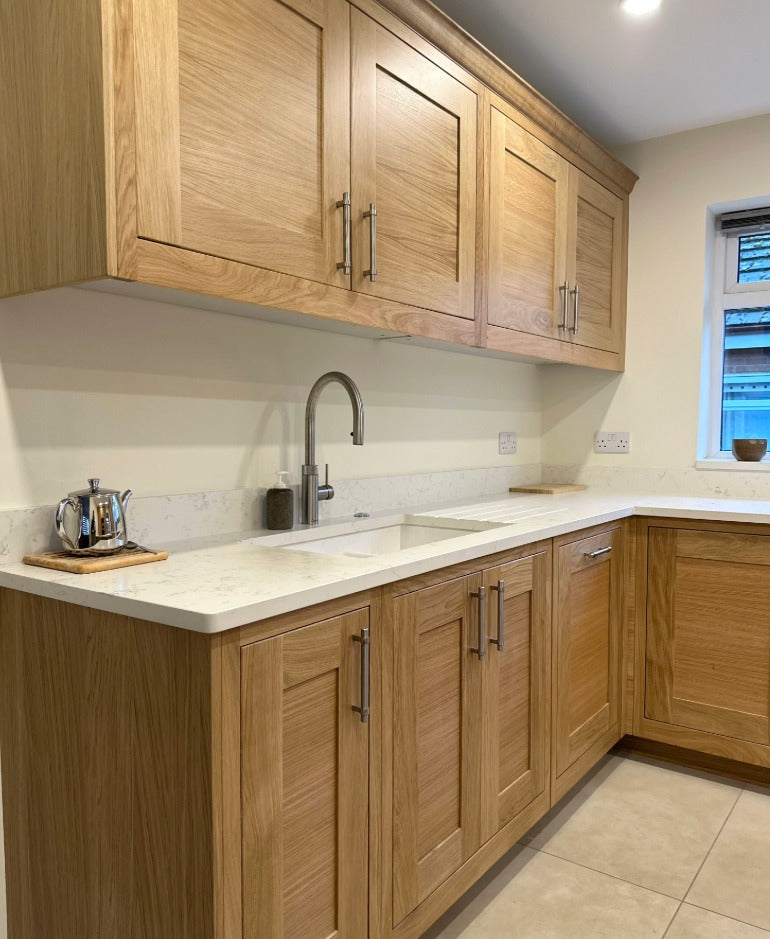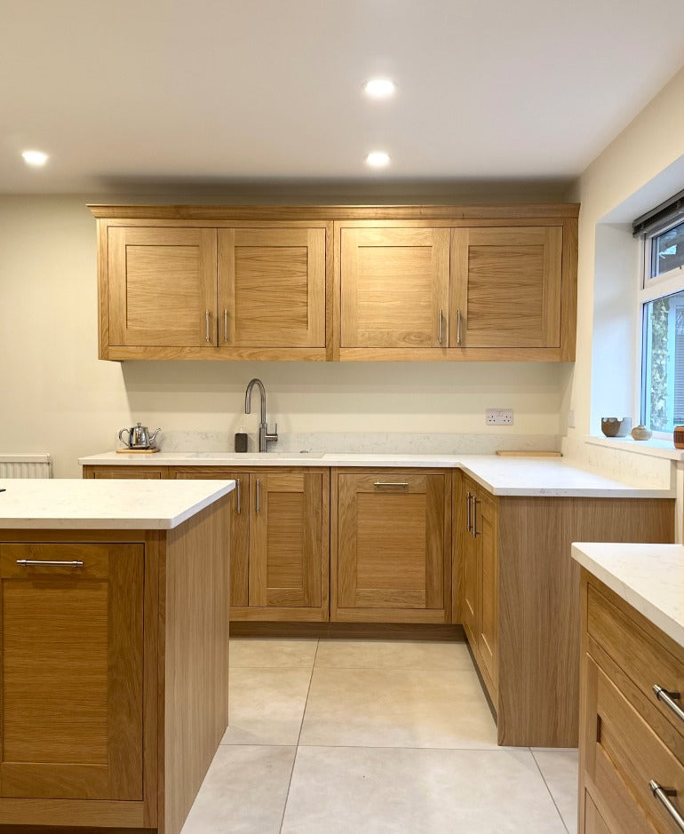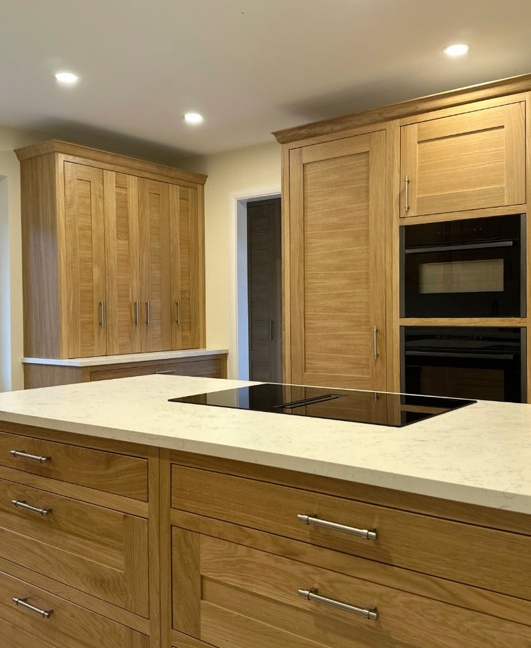 For functionality, we incorporated Neff appliances throughout, along with a Quooker Flex tap for instant boiling water and an Insinkerator waste disposal system, all designed to make everyday life easier. The look was completed with AG Blanco Carrara quartz worktops in a subtle leather finish, offering durability and a beautiful contrast against the oak cabinetry.