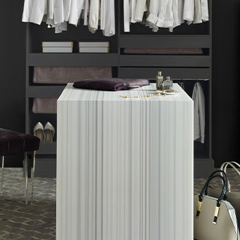 The beautiful purity of Corian can also be thermoformed, engraved, seamlessly joined or backlit, offering designers the scope to experiment with luminosity and form, composite material made from a blend of natural minerals and pure acrylic polymer.