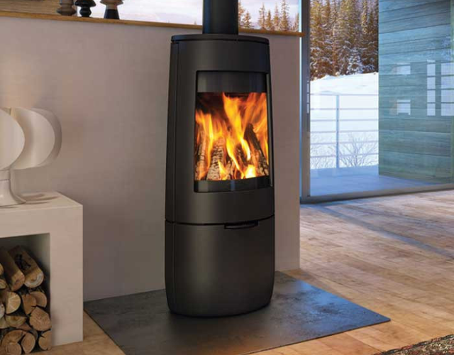 The Sense 203 is a compact wood burner, with its sleek body and subtle curves, is designed to make a statement. It sits atop an integral log box, adding both style and functionality. The Sense 203 also features stunning glass side panels that highlight the swirling flames created by Dovre’s latest Cleanburn system. Available in a variety of striking colour finishes, this stove is perfect for homeowners seeking a unique and efficient heating solution that adds a contemporary touch to their living space.