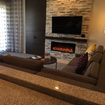With Flame, Ember Bed & Down Lighting that can be controlled independently or together, you have the flexibility to create the perfect atmosphere. The fireplace also offers two distinct ember bed stone styles, providing even more customization to suit your decor.