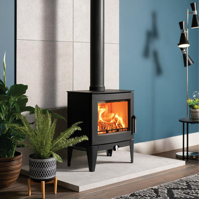 The Stovax Futura 5 Long Leg Wood Burning Stove is designed to deliver outstanding flame visuals, exceptional efficiency, and a sleek modern presence. With its curved door, contemporary exterior, and expansive viewing window, this stylish stove suits both traditional and modern homes, instantly becoming a captivating focal point in any room. The Long Leg design raises the stove by an additional 50mm, giving it a refined, elevated stance that enhances the visibility of the dancing flames.